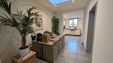 Hall d'entrée, séjour, salle-à-manger et belle cuisine ouverte super équipée. (taque vitrocéramique, four, hotte, grand frigo et freezer séparé, lave-vaisselle)